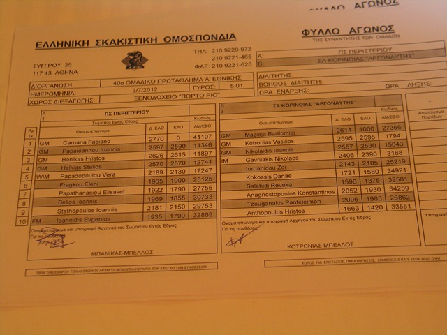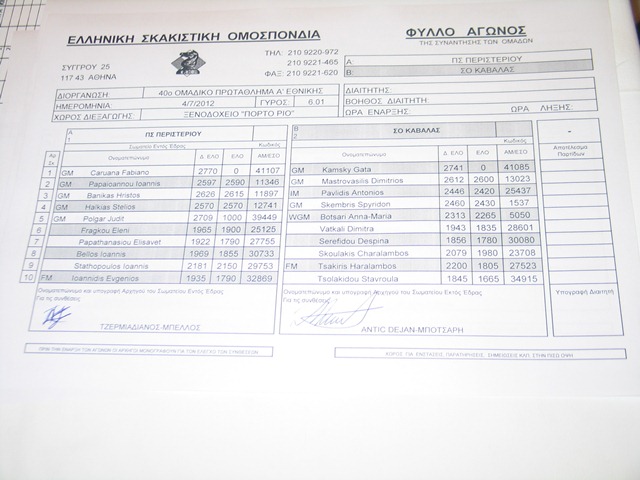 Με την Πρωταθλήτρια ομάδα αγωνίστηκαν συνολικά 14 σκακιστές όλων των κατηγοριών και συγκεκριμένα οι: Fabiano Caruana 2.5/5, Judit Polgar 3.5/4, Γιάννης Παπαϊωάννου 4/6, Χρίστος Μπανίκας (Αρχηγός) 5/6, Στέλιος Χαλκιάς 4.5/5, Αντρέας Τζερμιαδιανός 3/3, Βέρα Παπαδοπούλου 4/6, Γιάννης Μπέλλος (Αρχηγός) 2.5/4, Γιάννης Σταθόπουλος 4.5/6, Γιώργος Παπαδόπουλος 2/3, Φραγκίσκος Τσίρος 0.5/1, Ελένη Φράγκου 3/7, Ελισσάβετ Παπαθανασίου 5.5/7 και Ευγένιος Ιωαννίδης 7/7.