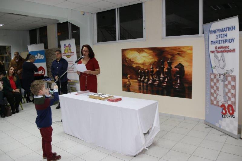 Η εκδήλωσε ξεκίνησε με ομιλία της προέδρου της Π.Σ.Π. κ. Ευαγγελίου Μαρίας, η οποία καλωσόρισε το Δήμαρχο κ. Ανδρέα Παχατουρίδη, τον βουλευτή επικρατείας κ. Φορτσάκη Θ., τον πρόεδρο του Δημ. Συμβουλίου κ. Λώλο Β. τους Αντιδημάρχους κ.κ. Τσιώτα Μ., Λύκο Π., Θεοδωράκο Τ., Μπέτση Β., τον πρόεδρο της ΔΕΠΑΔΠ κ. Καλιάφα Α., τους Δημοτικούς Συμβούλους: κκ Παναγιωτόπουλο, Τσερούλα, Κυρίτση, Πλέστη, και Κοινοτικούς Συμβούλους: κκ Πήτα, Καρυώτου, Γύφτου, την πρόεδρο ΟΠΑΑΠ κ. Κορόγιαννη, τους δεκάδες υποψήφιους αιρετούς που παραβρίσκονταν, τους σκακιστές, τους φίλους της ΠΣΠ.